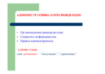 Административна кореспонденция - организационно-разпределителна, справочно- информационна, правно- административна...