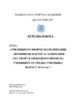 Значимостта на проблема за изграждане от най-ранна детска възраст на здравословни навици и формиране на физическа култура и активно поведение ни насочи към темата за физическото възпитание и спорта в начална училищна възраст...