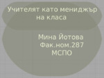 Учителят като мениджър на класа
