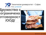 Дружеството с ограничена отговорност: е вид търговско дружество, което може да се състои от едно или повече лица, отговарящи за задълженията на дружеството...